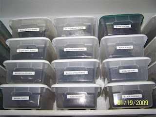 1. I have kept my shoes in clear plastic boxes for years. You can label them, but it worked fine without the labels since the boxes are see-through.